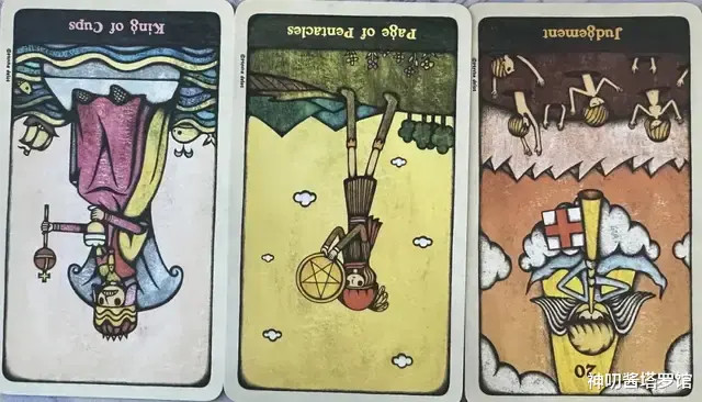 牌:圣杯皇帝- 星币侍从- 审判-