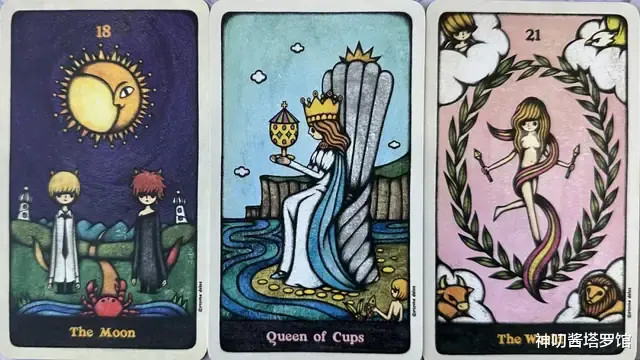 牌:月亮+ 圣杯皇后+ 世界+